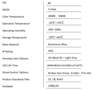 - Available in non-dim、0-10V dimming、DALI;