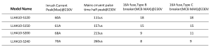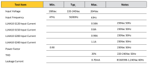 Max. No. of PSUs on 16A circu it breaker ( Test Con dition 230Vac 50Hz Ta=25 ℃)